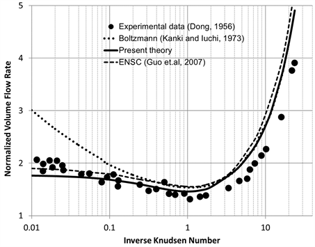 as a function of the inverse Knudsen number, according to the current theory, has the so-called “Knudsen minimum” at