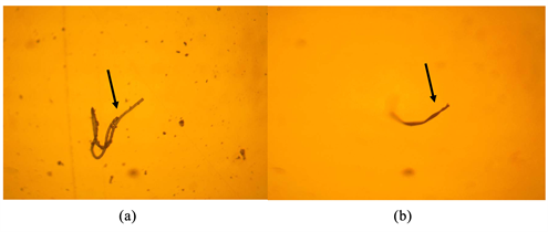 Examination of Plates: Beginning on the second to seventh day of incubation, the surface of the agar was examined using a microscope with 10× objective (it is not necessary to remove sealing tape from plates). The observation at one end of each visible feeding track was a confirmation of the presence of amoeba. But where no tracks were visible, a continued daily observation was employed for up to a period of ten (10) days before reporting the samples as negative for amoeba. For the identification of isolates and evaluation of Free-living Acanthamoeba, a loop was used to scrape up to ten individual clones of samples on the agar where amoeba are located, and a wet mount was made, viewed under oil-immersion using phase microscopy and observed for cyst forms and trophozoite with acanthapodia (spine-like pseudopods) on their surface; this is characteristic of Acanthamoeba species [27] [28] [29] [30]. Extract from cultures indicates Amoeba cysts [31], and is identified as belonging to one of the cyst morphological clusters (Acanthamoeba species I to III) as recognized by Pussard and Pons [32].