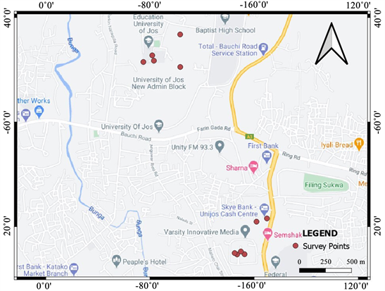 Study Area: The study was conducted in the eleven (11) Faculties of the University of Jos, Plateau State, Nigeria. University of Jos is located in Jos North Local Government Area of Plateau State Nigeria. It is located at longitude 9.9499˚N and at latitude 8.8897˚E. A Global Positioning System was used in the marking of each collection site (Figure 1).