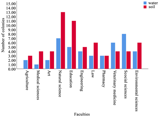 Figure 2. Clustered bar chart showing distribution of Acanthamoeba colonies across faculties.