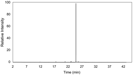 Figure 2 and Figure 3 evidence the good degree of purity of the esters, these esters being the results of the esterification reaction with conversion from 97% to ethyl octanoate and 98% to ethyl oleate. For esterification reactions following the methodology described, the yield of ethyl octanoate was 92% and the yield in ethyl oleate was 93%.