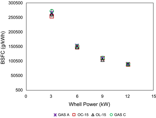 The brake specific fuel consumption of the formulations analyzed is shown in Figure 5.