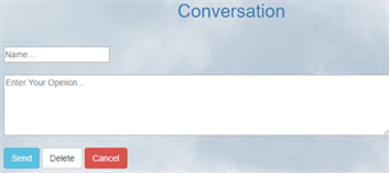 Figure 12 depicts their application’s communication system. A user can send a message and other users can receive it. Here, users first write their name in the first box, then write their opinion in the second box. After that, using the send button, they can easily send the message to another user. Users can also choose to delete the message. This system is open to expansion but not to modification. That is, everyone can see the message and respond to it, but they cannot edit the messages of others.