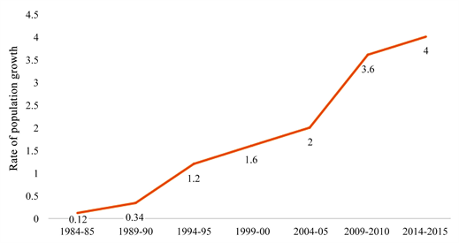 Figure 1. Graph showing the population growth rate from 1984-85 to 2014-15.