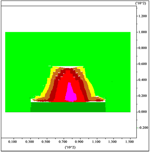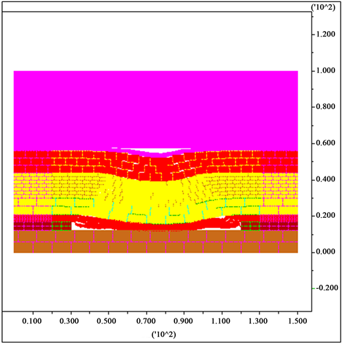 According to calculated results, the distribution of plastic area and rock fracture development figure showed unit area where the failure occurred. Although in the process of mining, the previously generated fractured rock mass is mostly