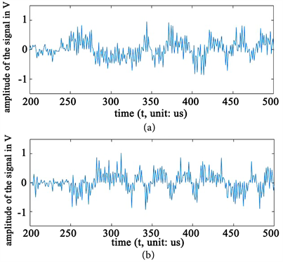 Figure 8. Signal waveform after I-channel and Q-channel sampling. (a) I-channel sampling; (b) Q-channel sampling.