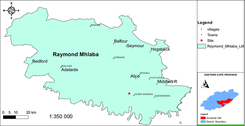 Figure 1. The map of the study site in Raymond Local Municipality under the Amathole District.