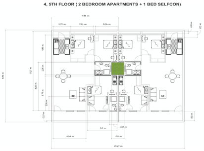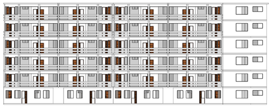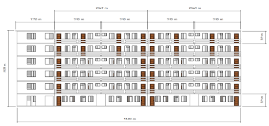 1) From the survey, it was revealed that the majority of facilities (96.4%) consisted of 3 floors. A redesign of the estate housing has been presented in Section 3. An addition of two floors was added to the initial design of the buildings in the estate. This is in line with meeting social housing requirements.