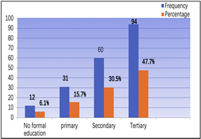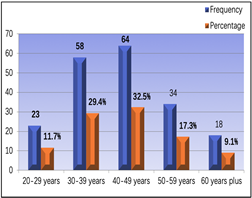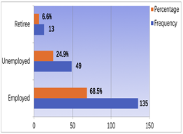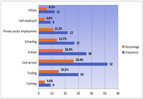 It was observed that male respondents constituted more for the study (60.9%) than female respondents (39.1%). For this study, age bracket 40 - 49 (64%), 30 - 39 (29.4%), and 20 - 29 (11.7%), can be termed the active and most active working age bracket. Further details of the analysis can be found in Figure 1, and detailed discussion of this data has been given in Section 4.