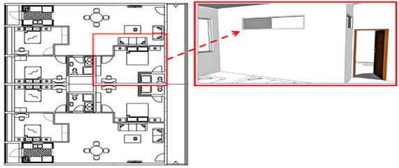 3) As revealed in the survey, 84.2% of the respondents stated that their rooms, kitchen, Toilet/bath are not well ventilated. In the proposed housing design of Section 3, this issue is resolved by providing ventilation within the building envelope. To improve air quality, internal windows are included on the walls of each room. This concept is shown in Figure 3. The design in Section 3 also proposes the use of sliding windows for ventilation as compared to the existing wooding ones, which had no consideration for air filtering.