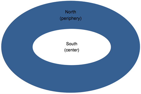 Figure 3. Center and periphery relationship between the Northern and Southern region in the Gold Coast (Author’s construct, 2014).