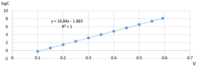 Figure 6. Plotting of logC against the voltage V.