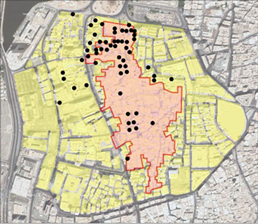 The following figure (Figure 7) represents the locations of the landmarks (dots in black) that were collected and preserved within the geographical database of the historical region of Jeddah.