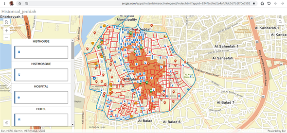 The Kingdom of Saudi Arabia’s government is engaged in the tourist industry and its promotion. The government has made numerous initiatives in this area, most notably in the Kingdom’s Vision 2030, which includes a series of targets aimed specifically at the entertainment and tourism industries. Jeddah’s historical area is distinguished by its distinctive style buildings, traditional markets, historical mansions, historical mosques, and museums, all of which attract tourists. This study attempted to use the two best techniques in geographic information systems and the Internet (data access application) to enhance tourism in this key site. A geographic information system was utilized to catalog historical sites and map them. The maps also include descriptions of the locations so that travelers can readily comprehend and use them. A website has also been built that gives information on the locations of historical and historical monuments, as well as brief descriptions of those locations. This website will become a one-stop-shop for all information regarding historical sites in Historic Jeddah. This study demonstrated the significance of using geographic databases and geographic information systems to inventory archaeological sites, as we demonstrated that developing a geographic information system conceptual model is essentially a database design exercise that primarily includes formal modeling (preparing a data model) for a geographical database.