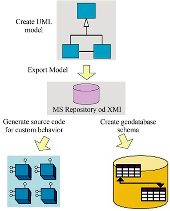 Figure 3. Design and development of a geodatabase using the UML CASE tool.