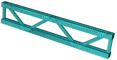 The OWTJ shape was non-prismatic and complex. The tetrahedron mesh (C3D4) type was selected, as shown in Figure 6, to obtain a better simulation result. A convergence study was first carried out because the mesh density has a significant influence on both the displacement and stress results [27]. The simulated load-displacement curve given by the FE model was evaluated and compared with the experimental test results for verification. Then, a parametric study was conducted using this verified model to simulate larger spans of similar composite floors.