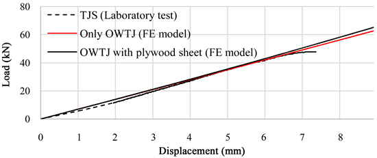 Figure 14. The load-displacement curve of TJS specimen obtained from laboratory test and FE model.