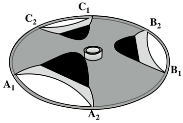 The disc-shaped artefact, aka the Egyptian Tri-Lobed Disc Figure 1, was excavated from the Mastaba of Prince Sabu (son of Pharaoh Anedjib, First Dynasty (c.3150-2890 BC)) by Walter Bryan Emery in 1936 (Emery, 1949) . It has the structure of a central hub and three smoothly curved “lobes,” and its dimensions are: 61 cm in diameter, 1 cm thick, and 10.6 cm in the center (see Figure 2 and Figure 3). The central hub obviously has been designed to fit onto a pole. It is reported that the object is made of schist, a very fragile and delicate rock. These features of the Disc, the curvature and delicacy, naturally suggest that it was used softly in some liquid. Taking account of these features of the Disc, and also of