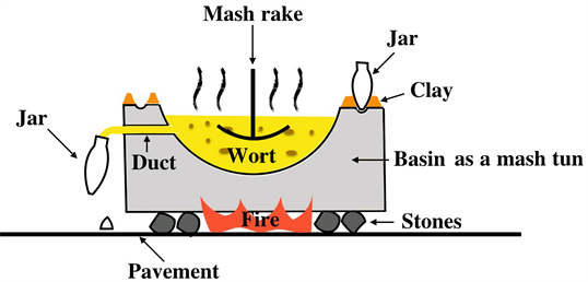 We strongly believe that Prince Sabu had a “royal” mash tun big enough to accept the Tri-Lobed Disc. To imagine “how big it was,” let us see some historical examples. The picture Figure 22 from the website of “Carling Brewery” shows mash tuns, both of which (on the left and on the right) are big enough to accept the Tri-Lobed Disc. A typical mash tun in medieval Europe can be seen in Figure 23 (Dineley, 2009), which is explained in (Dineley, 2010) that “the brick structure houses the metal container in which the crushed malt and water are mashed. A fire heats the mixture.” Though this mash tun is not so big, we can easily think of its enlarged version. A big essential problem in the early Bronze