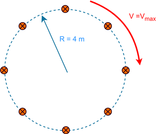 A steady-state turn lets the driver drive around a circle with a radius of 4 meters as seen in Figure 7. The driver drives as fast as possible around the circle while remaining stable with all wheels on the ground.