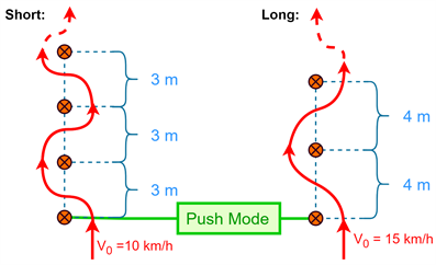 The slalom is executed using fixed distances at 3 m for the short slalom and 4 m for the long slalom as seen in Figure 11. The short slalom is done at 10 km/h and the long slalom at 15 km/h.