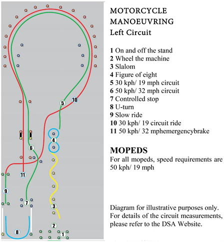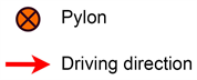 The different manoeuvres are described according to Figure 4. The manoeuvres are set up using pylons.
