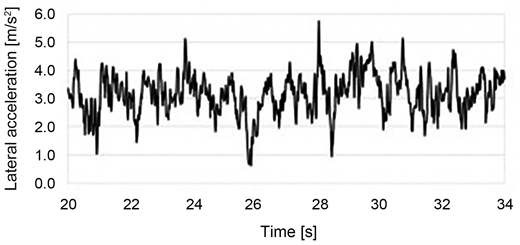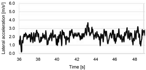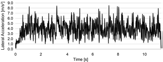 Figure 14. Lateral acceleration of city shopping during steady-state turn.