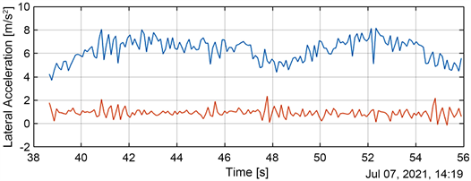 Figure 15. Lateral acceleration of babboe big during steady-state turn.