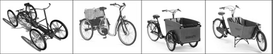 Figure 3. QuadRad, city shopping bike, babboe big, babboe city (from left to right).