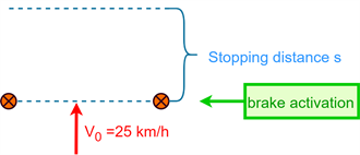 To ensure the safety of the vehicle, the braking capabilities requires evaluation. When any obstacles occur, the vehicle must be able to perform a controlled emergency stop. This test measures the braking capabilities at a given speed. An emergency stop is done at a velocity of 25 km/h. Braking is applied when the front wheel is between the pylons (Figure 5).