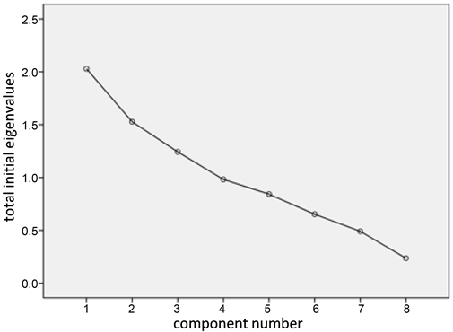 According to the suggestion of Harris (1968), only the variables with a load capacity of more than 0.5 have statistical significance. This means that this principal component analysis would only use the variables with a load capacity of more than 0.5 to find out the principal components. As is shown in Table 7,
