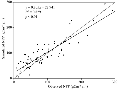 Figure 1. Validation of the CASA model for the grasslands in study area.