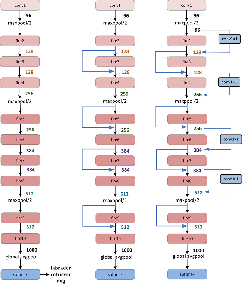 Figure 3. The structure of SqueezeNet and its changes [18].