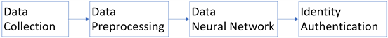 The system aimed to recognize user identity by utilizing user motion characteristics. The system framework contained four parts: signal collection, data preprocessing, neural network training, and identity authentication, as shown in Figure 4. The procedure of the system could be described as follows. Firstly, the user waved the smartphone, and the motion sensors’ data were recorded. Secondly, the data was normalized to balance the difference among the different motion sensors. At the same time, we split the data into even lengths and resized them into standard shapes to feed them into the neural network. Thirdly, we input the samples to neural network and train network parameters. After the training process, the model parameters were stored. Finally, the identity was validated, and performance was analyzed.