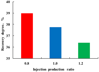 The recovery degree of different injection production ratio is shown in Figure 7.