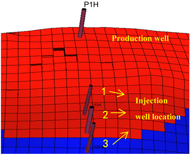 Figure 12. Schematic diagram of different locations of production wells and water injection wells.