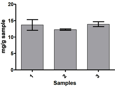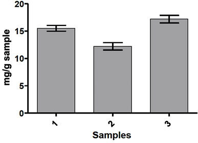 Figure 3. TFC of Curcuma longa, Acorus calamus and Camellia sinensis ethanolic extracts. *Here samples 1, 2 and 3 refers to Curcuma longa, Acorus calamus and Camellia sinensis ethanolic extracts.