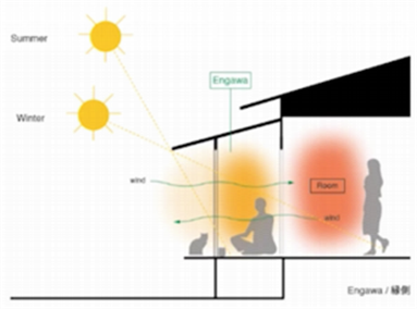 In traditional Japanese architecture, the “engawa” space provides more intersections between the indoor and outdoor, thus blurring the indoor and outdoor boundaries.