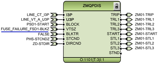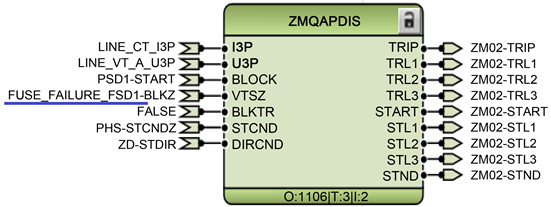 Figure 10. Using the internal function fuse fail to block the distance protection function.