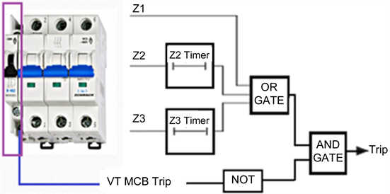 The simulation of VT fuse fail can be implemented by normal load injection to the protection distance relay, with applying setting of VT MCB trip after healthy condition. The below Table 3 shows the distance function protection blocking for distance zone faults.