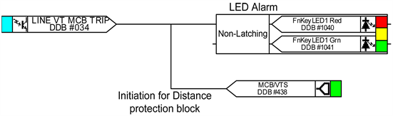 Figure 9. Using the fuse fail relay at 2 winding VT and MCB for blocking.
