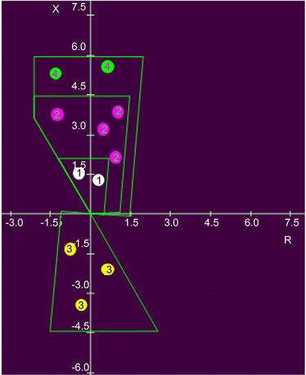 The simulated experiment in this paper used by a secondary injection kit, the operating voltage for the simulated system is 115 kV, the voltage transformer ratio is (115 kV/115V) and the current transformer ratio is (1200 A/1A) [12]. This experiment simulated by a protection IEDs type distance protection relay with three phase symmetrical fault. Figure 11 shows the quadrature impedance for