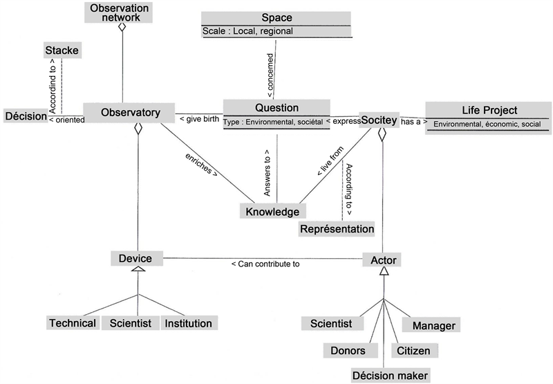 In order to materialize the role of an observatory in any society, [13] propose a generic model whose UML formalism scheme is presented below (Figure 2).