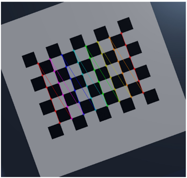cv::drawChessboardCorners() inserts markers for the detected corners into the stereo images, which is shown in Figure 15.