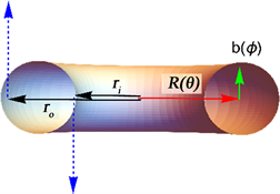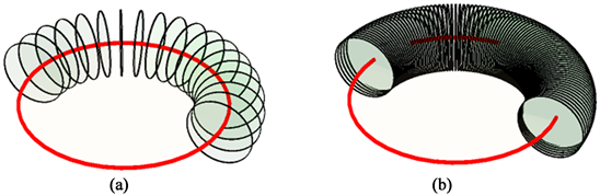 Figure 3. (a) U(1) (circles) centered on red U(1) circle yield; (b) torus with U(1) × U(1) symmetry.
