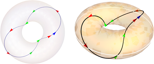 The physical regimes of interest are ultra-high-density gravitational fields, exemplified by big bang and atom-atom collisions at CERN. Both such regimes are extremely turbulent such that collisions of helices, including self-intersection occurs, potentially forming tori. In such cases the symmetry is essentially U(1) × U(1) as illustrated in Figure 3.