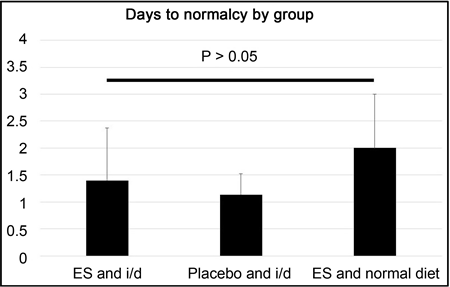 Figure 1. The number of days to normalcy for each of the three groups: ES and i/d, placebo and i/d, and ES and normal diet.