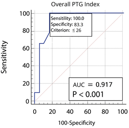 Figure 8. Overall PTG Index marker sensitivity and specificity.