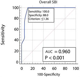 Figure 9. The sum of the overall ABI plus TBI (SBI) specificity and sensitivity