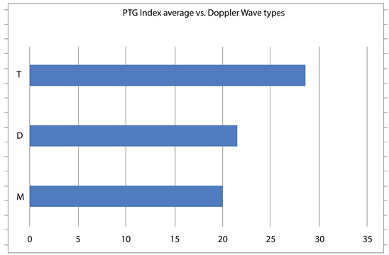 Overall PTG Index marker average compared with the color Doppler waveform types